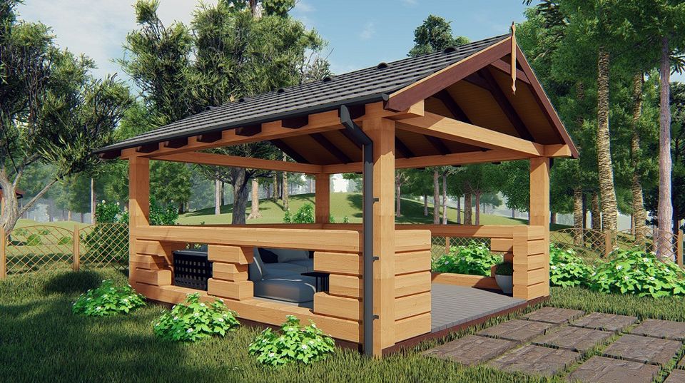 Жоден дачний будиночок або садова садиба не обійдеться без симпатичної дерев'яної альтанки, виготовити її можна з клеєного бруса. Вона завжди має прекрасні зовнішні дані і виконана з екологічно чистого матеріалу - смереки.